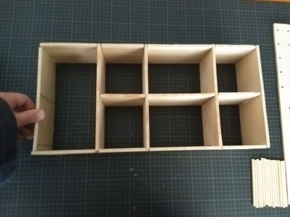Durch die halbseitig verzahnten Kanten erhält man einen stabilen "Setzkasten" sobald man die Teile in die Kiste gepuzzelt hat, was allerdings ne echte Fummelei war!