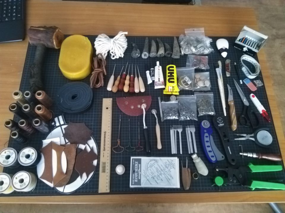 - eine kleine Zange - manchmal verklemmt sich die Nadel im Leder und ist dann mit der Hand nicht mehr herauszubekommen.