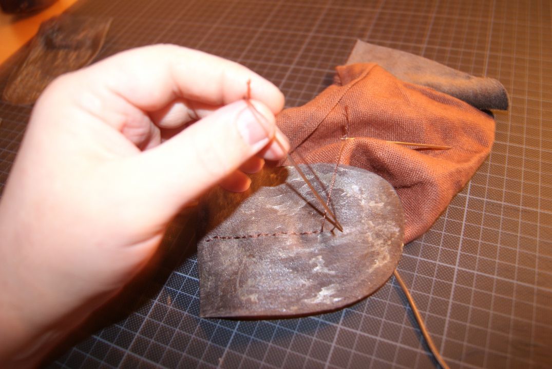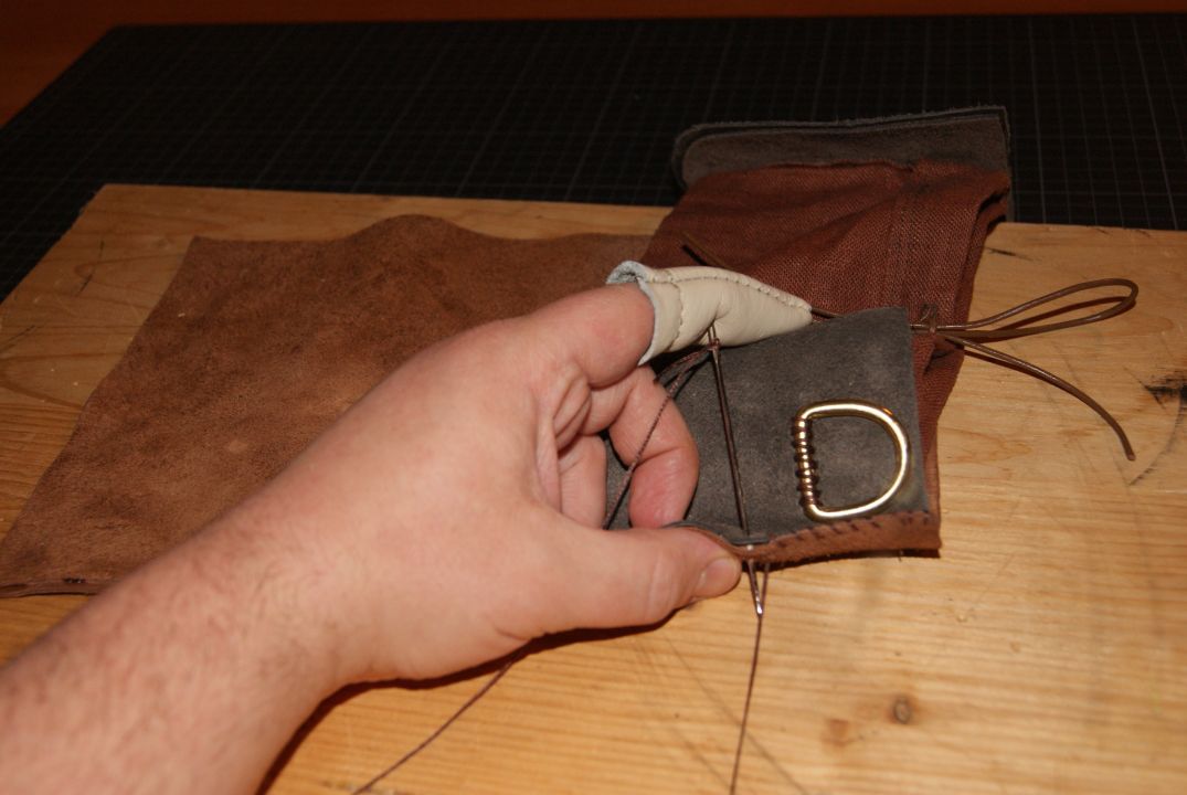 - Ich nähe das dünne Leder meist ohne die Löcher vorzustechen - ist mir zu viel Arbeit. Beim Annähen dieser Kleinteile mache ich mir die Arbeit aber, damit später alles wirklich grade sitzt.