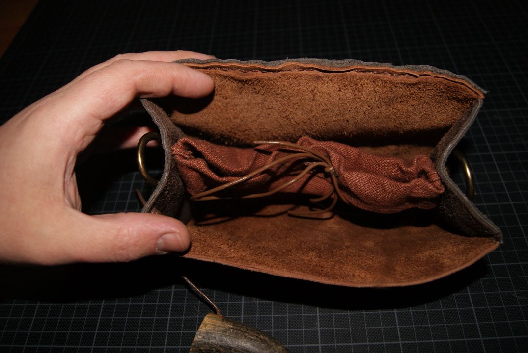 Redaktionelle Anmerkung: Für eine Tasche in A-Lager-Qualität müsste die Innentasche natürlich mit der Hand genäht werden. Da dieser Taschenentwurf aber von mir persönlich ist und es keine historische Vorlage dafür gibt, reicht mir am Ende der mittelalterliche Look und ich erlaube mir eine gewisse Faulheit.