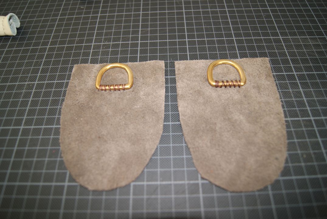 Anschließend nähe ich D-Ringe aus Messing, an denen später bei Bedarf der Schulterriemen befestigt werden kann, an die äußeren Seitenteile.